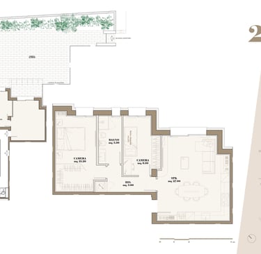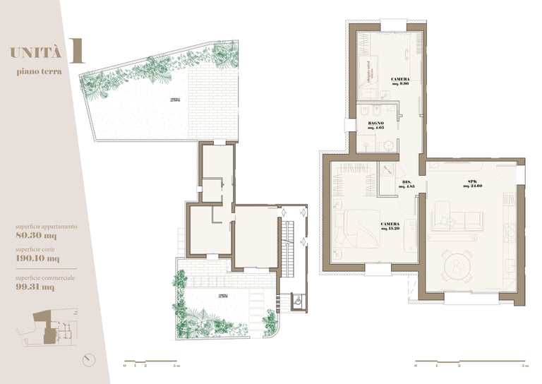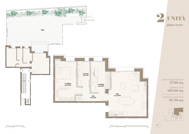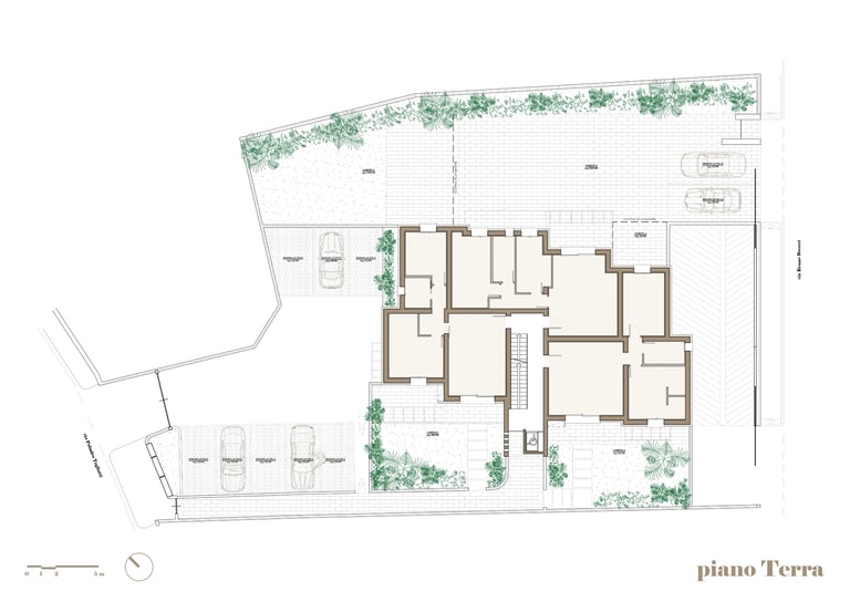 Gli appartamenti al piano terra si distinguono per la presenza di corti e giardini privati, veri e propri prolungamenti dello spazio interno verso l’esterno, che offrono privacy e uno stile di vita a contatto con il verde. Ideali per chi desidera godere della tranquillità di un’area esclusiva all’aperto.