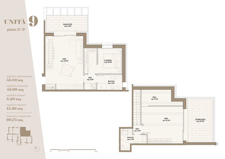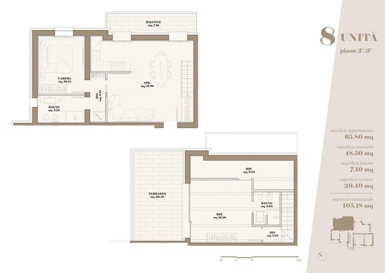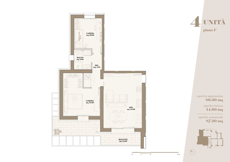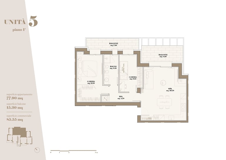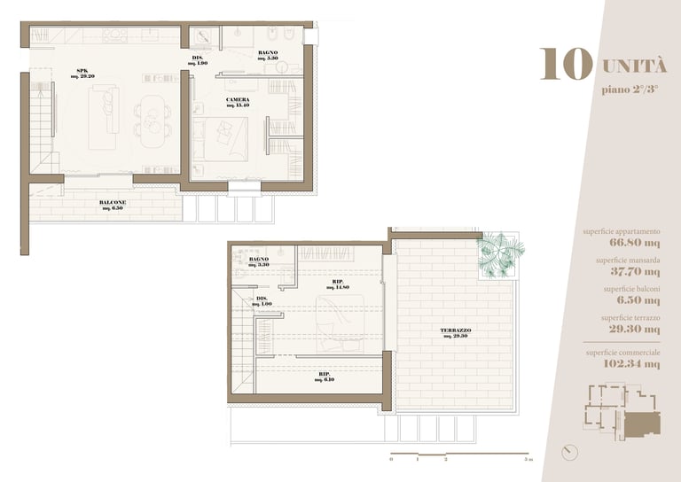 L’edificio ospita 10 appartamenti di varia metratura, progettati per soddisfare differenti esigenze abitative, con particolare attenzione alla qualità degli spazi, all’illuminazione naturale e alla vivibilità quotidiana.